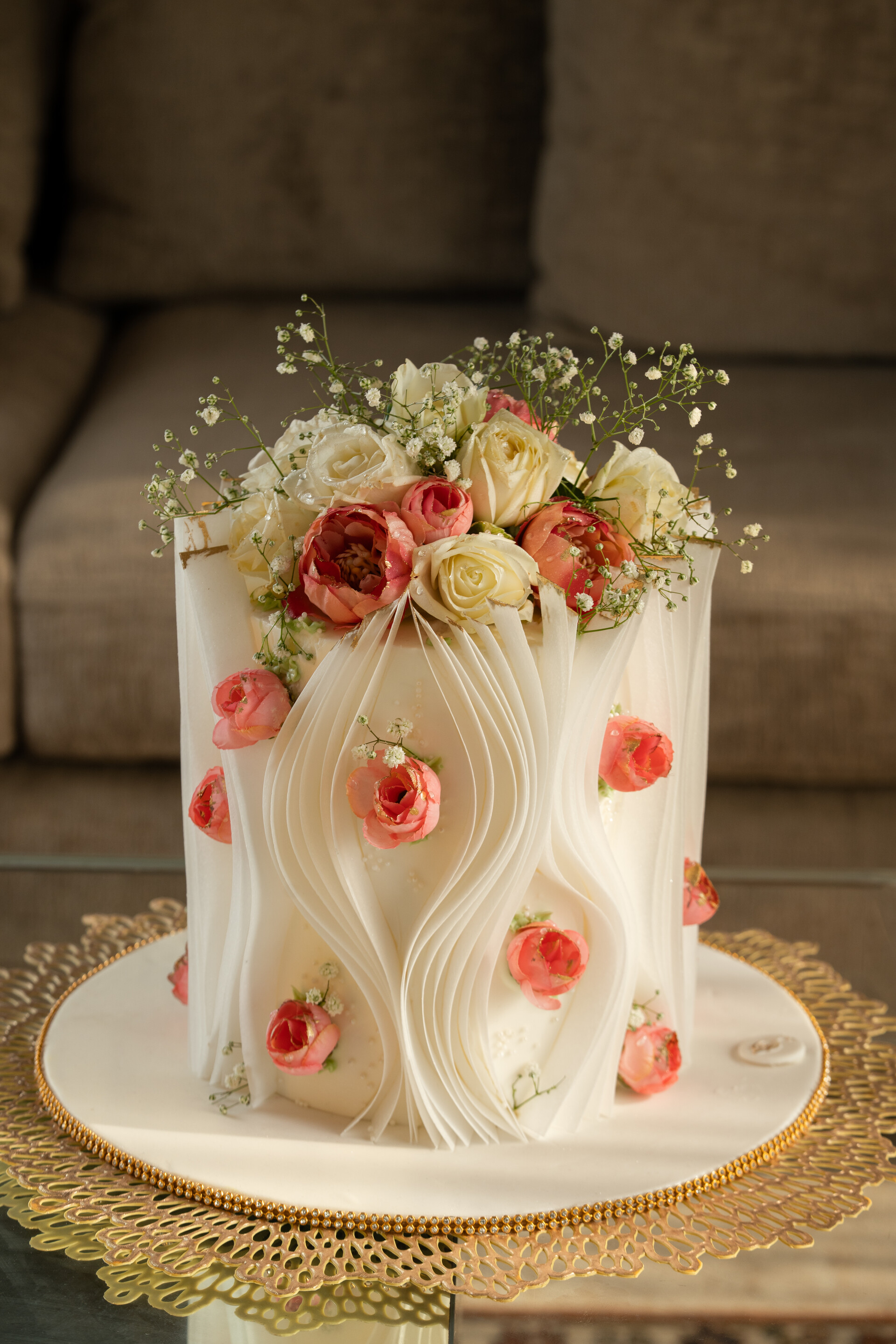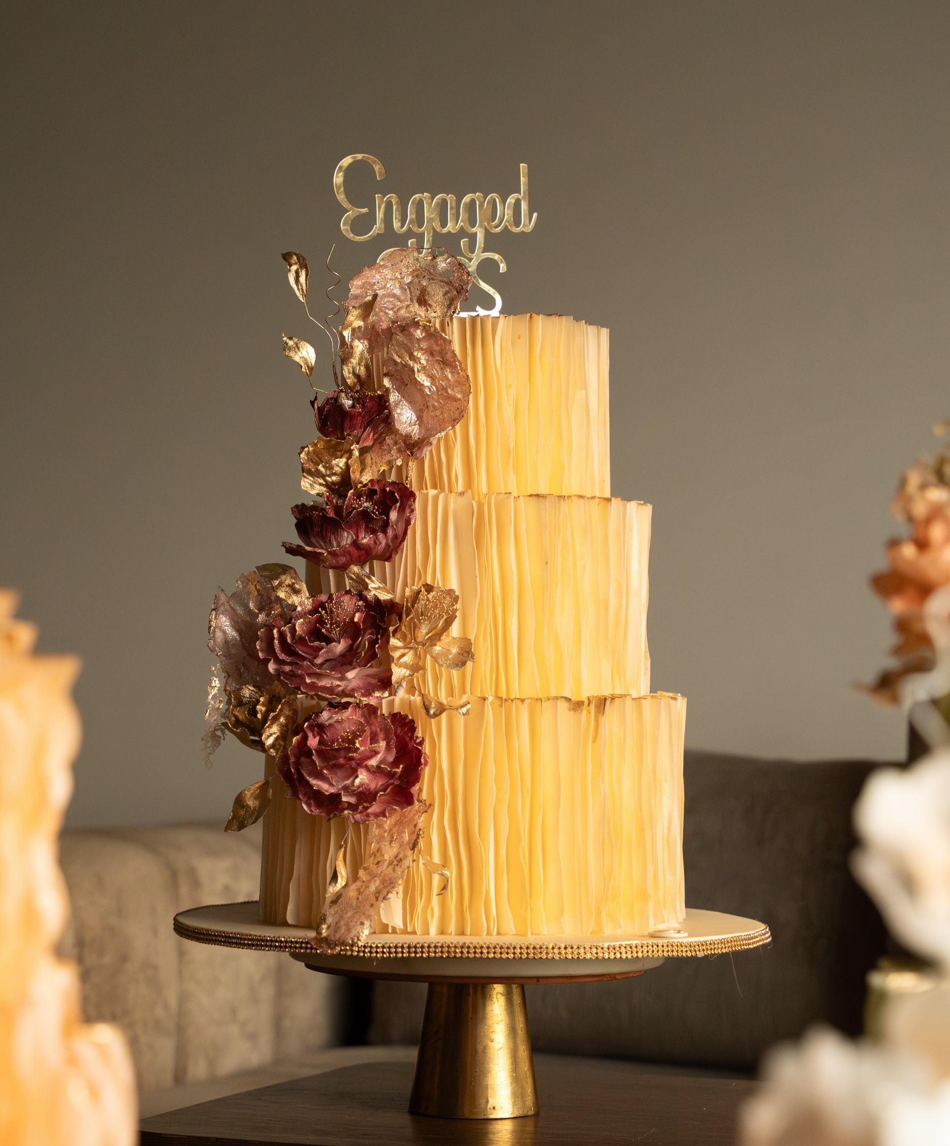 Introducing to you Deliciae’s new wedding cake collection in the wafer paper technique. This technique allows for a completely new look for my custom cakes, with ruffles being the central theme. Vibrant colours, exotic light flowers, and ofcourse that touch of gold makes this collection an exciting one.